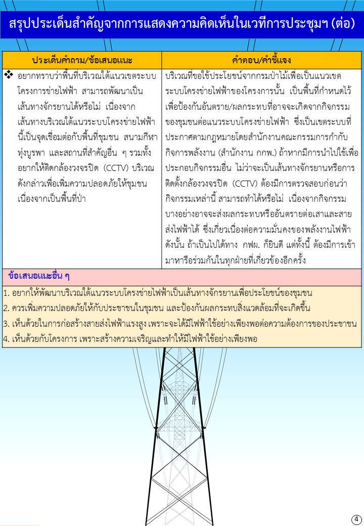 สรุปผลกิจกรรมการรับฟังความคิดเห็นของประชาชน ครั้งที่ 2 โครงการระบบโครงข่ายไฟฟ้า 230 กิโลโวลต์ ตาก2-แม่สอด (ส่วนที่พาดผ่านพื้นที่ป่าอนุรักษ์เพิ่มเติม)