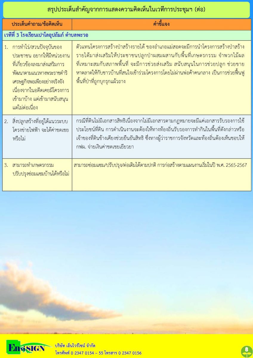 สรุปผลกิจกรรมการรับฟังความคิดเห็นของประชาชน ครั้งที่ 2 โครงการระบบโครงข่ายไฟฟ้า 230 กิโลโวลต์ ตาก2-แม่สอด (ส่วนที่พาดผ่านพื้นที่ป่าอนุรักษ์เพิ่มเติม)